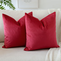 Otostar Pack Of 2 Velvet Soft Decorative Throw Pillow Covers 18 X 18 Inch Solid Square Cushion Case Couch Home Decor Pillow Covers For Sofa Bedroom Living Room (Red)