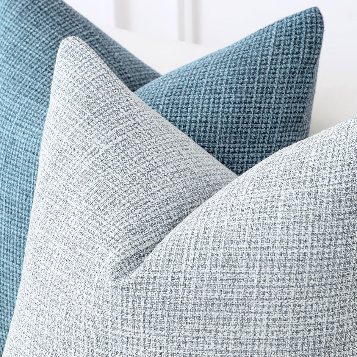 Otostar Set Of 2 Linen Throw Pillow Covers With Inserts Included Decorative Square Pillowcases With Inserts 20X20 Inch For Home Decor Sofa Bedroom Car 50 X 50 Cm Blue Grey