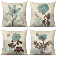 Otostar Set Of 4 Blue Flower Throw Pillow Covers 18X18 Inch Decorative Square Pillowcase Cotton Linen Cushion Cases For Home Dec