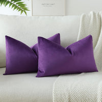 Otostar Velvet Soft Solid Decorative Throw Pillow Covers 12 X 20 Inch Pillow Covers Lumbar Cushion Case Couch Pillowcases For Sofa Bed Home Decor Pack Of 2 (Purple)