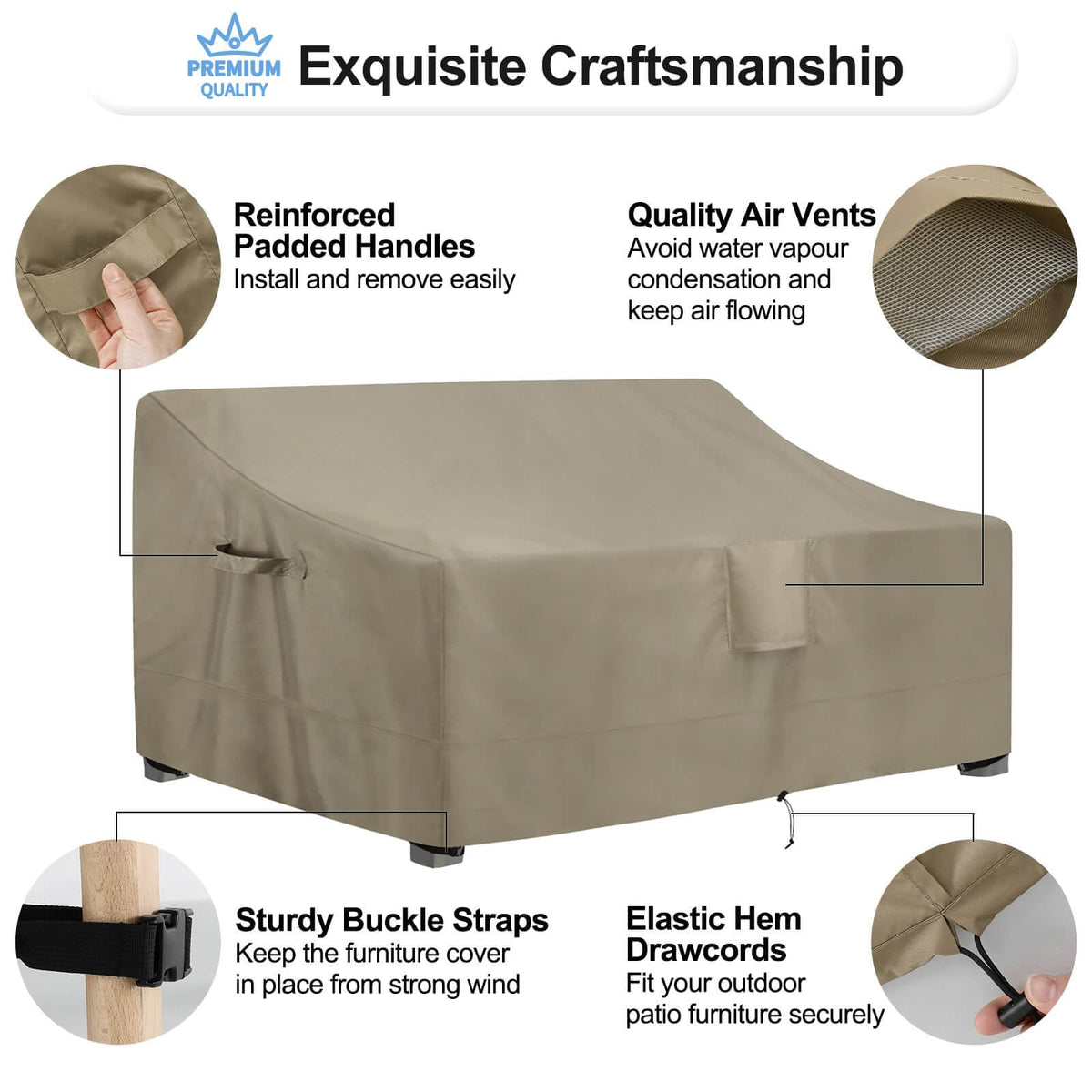 Hoping To Find A Multifunctional Patio Couch Cover To Protect Your Outdoor Sofas? Outdoorlines 3-Seater Couch Cover Are Absolutely What You Need! Premium Oxford Fabric With Uv Resistant And Waterproof Coating Make These Patio Couch Covers To Defend Your Outdoor Sofa Furniture From Uv Rays, Heavy Rain, And Snow. With Adjustable Hem Drawstrings And Buckles, Our Outdoor Couch Cover Can Perfectly Fit Your Furniture And Protect Your Patio Chair From Strong Wind.