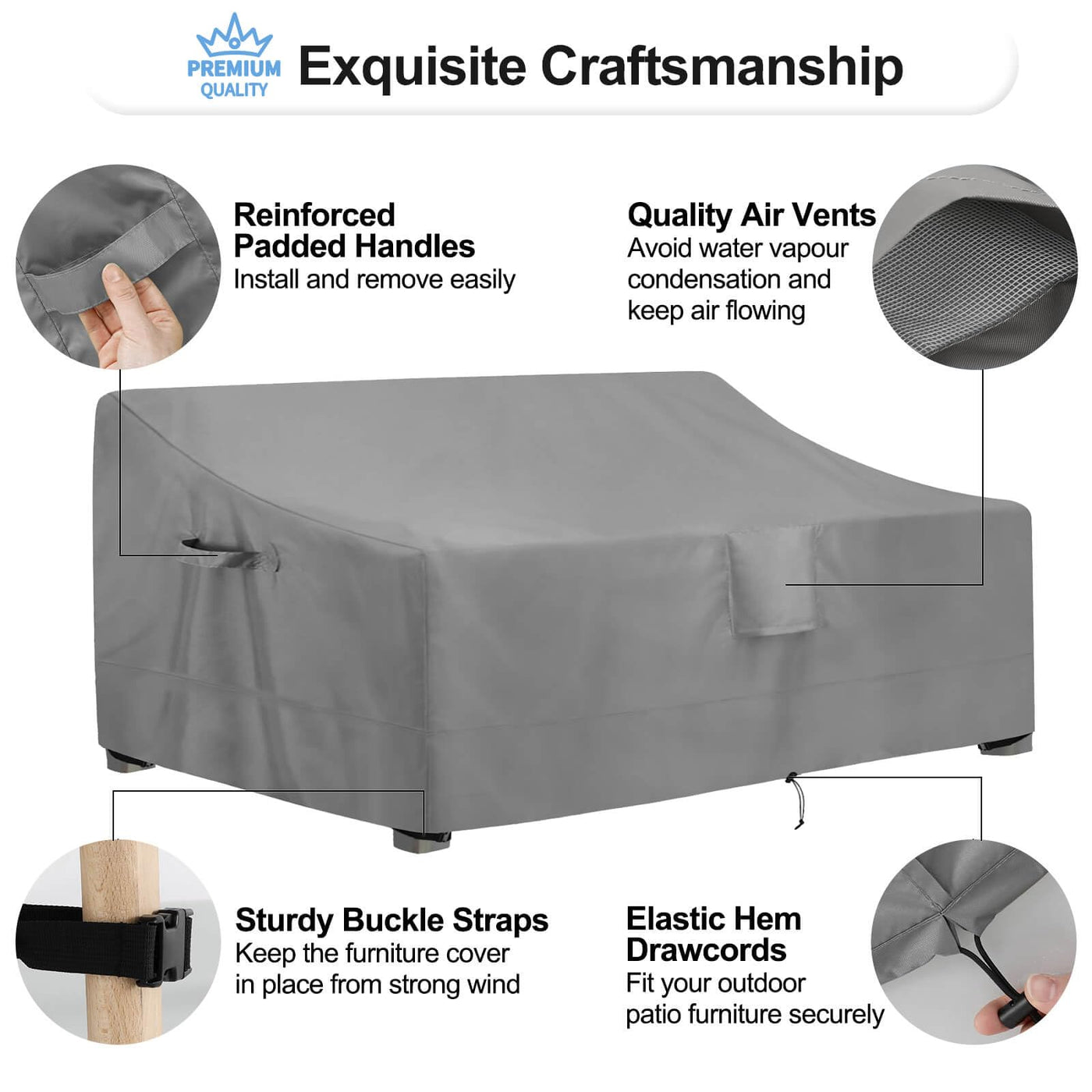 2 Large Sturdy Handles To Install And Remove Outdoor Couch Cover Easily