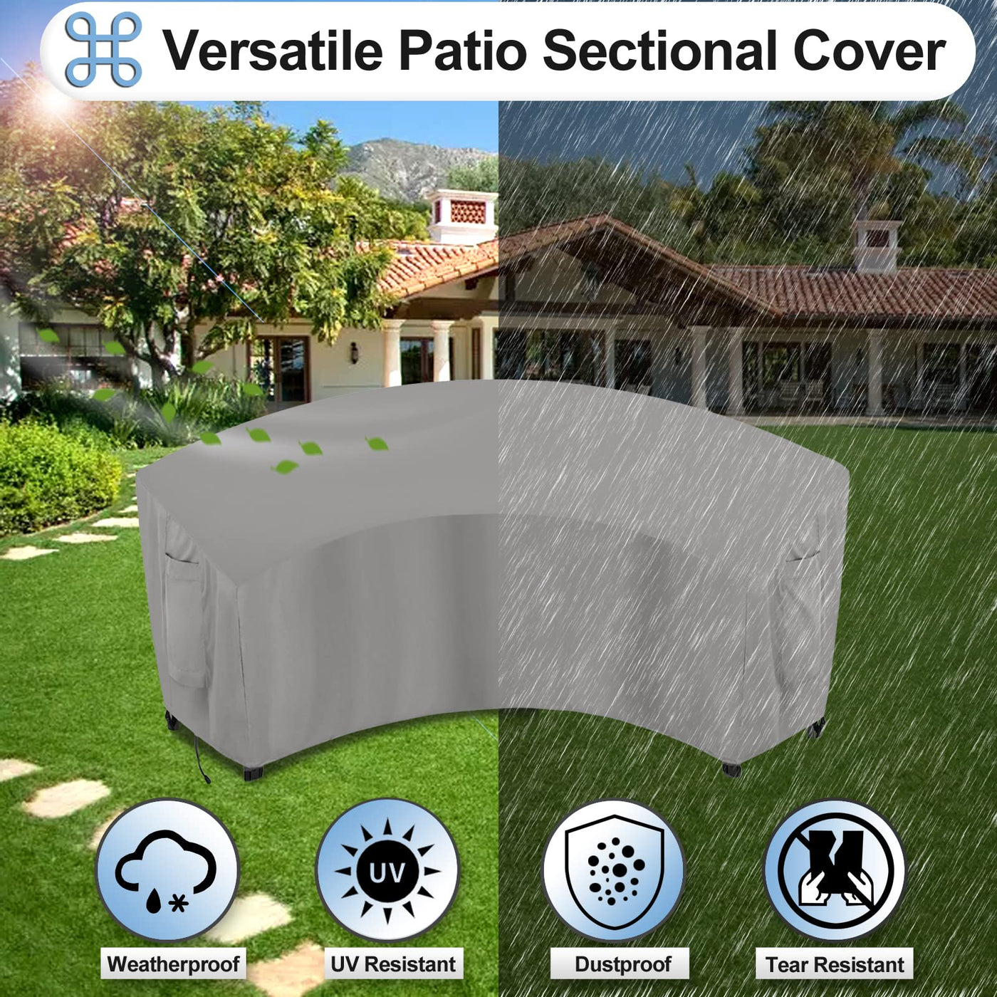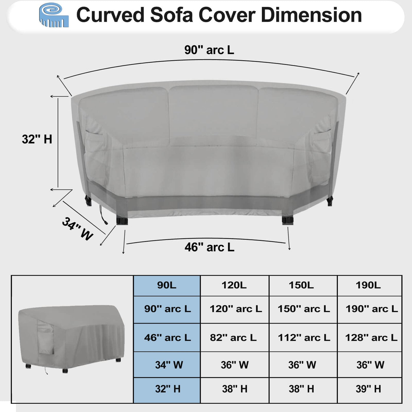 Outdoorlines Waterproof Curved Outdoor Sectional Cover - Uv Resistant Windproof Patio Sectional Sofa Covers For Deck, Lawn And Backyard, Heavy Duty Furniture Covers (90Lx34Dx32Hx46Fl, Gray)