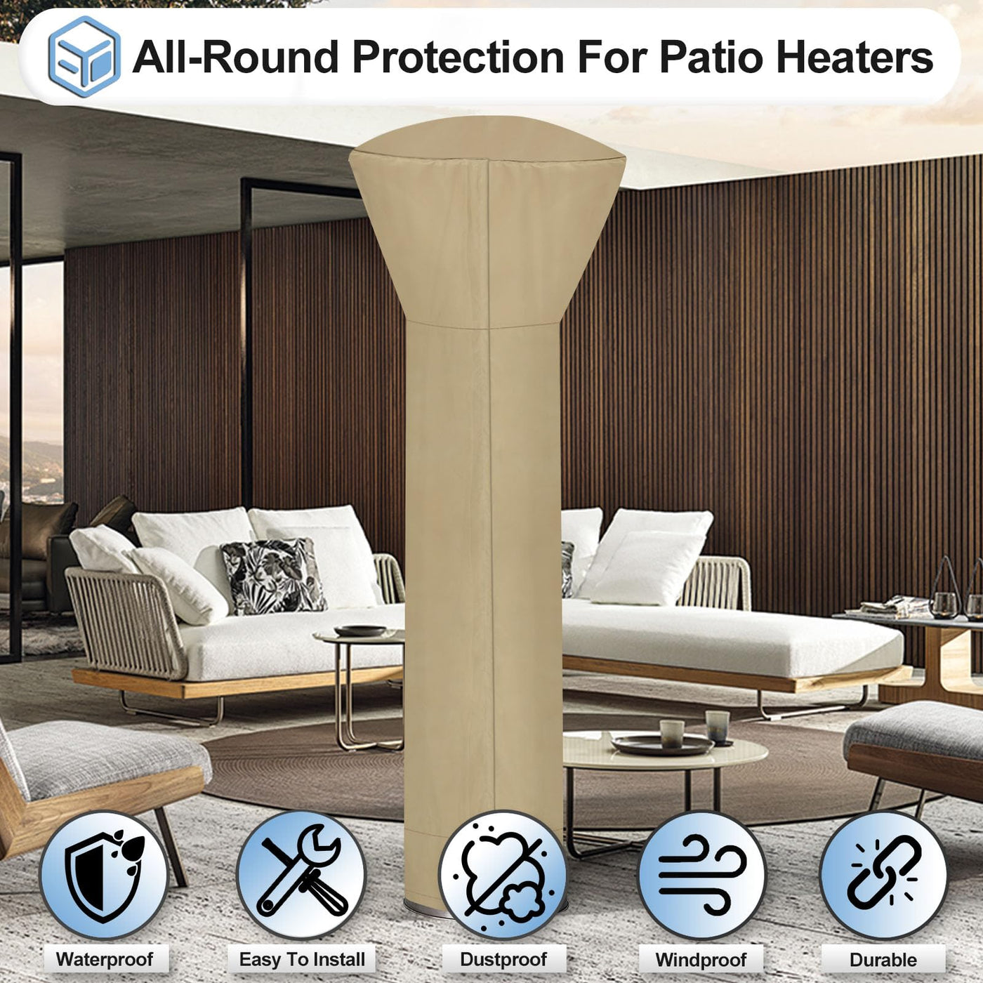 Outdoorlines Waterproof Outdoor Patio Heater Covers With Zipper And Storage Bag, Dust-Proof Uv-Resistant Windproof Propane Heavy Duty Heater Cover For Standing Heater, 2 Packs-89Hx33Dx19B Inch Camel