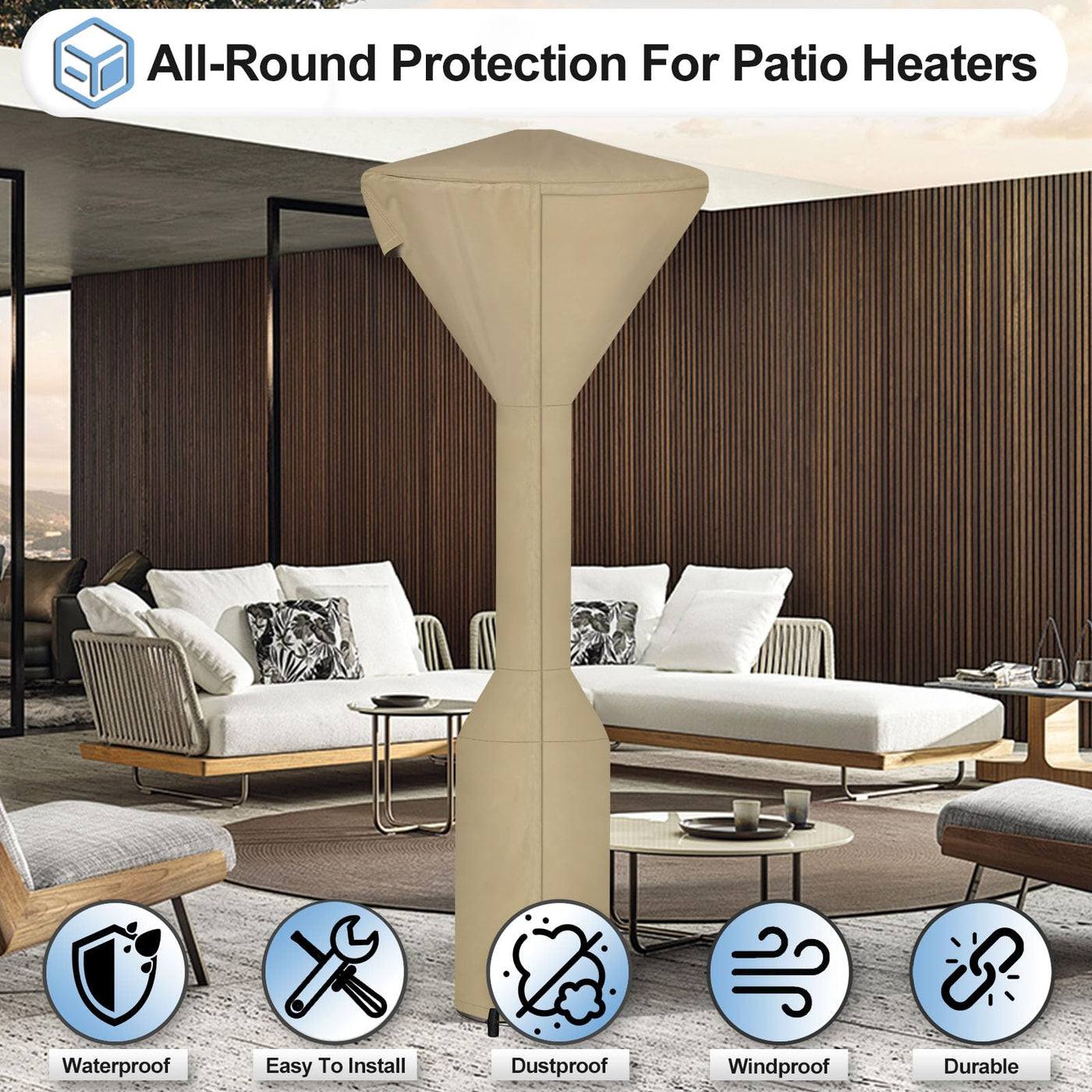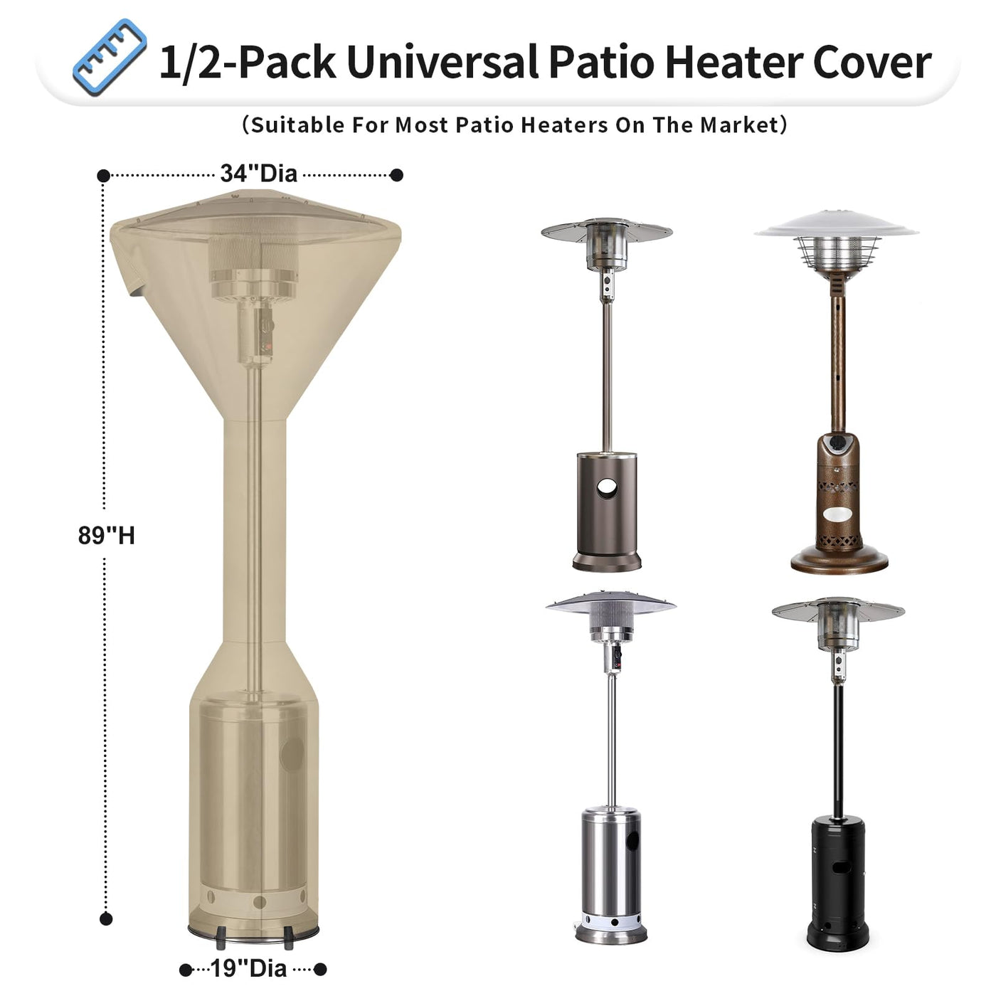 Outdoorlines Waterproof Outdoor Patio Heater Covers With Zipper And Storage Bag, Dust-Proof Uv-Resistant Windproof Propane Heavy Duty Heater Cover For Standing Heater, 2 Packs-95Hx34Dx19B Inch Camel