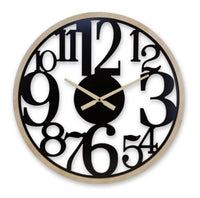 Wall Clock 23.5''D MDF Clocks are a timeless decor choice that never go out of style, and this?lock?s no exception. Add the perfect finishing touch to any room in your home with this stunning Modern Number Wall Clock. The classic black finish paired with the modern oversized numbers is the perfect combination to create a beautiful display. This clock will fit in great with the modern or contemporary style of decor. Measures 23.5 x 1.5 x 23.5 Primary Materials: MDF Reccommended for indoor use only Batteries not included