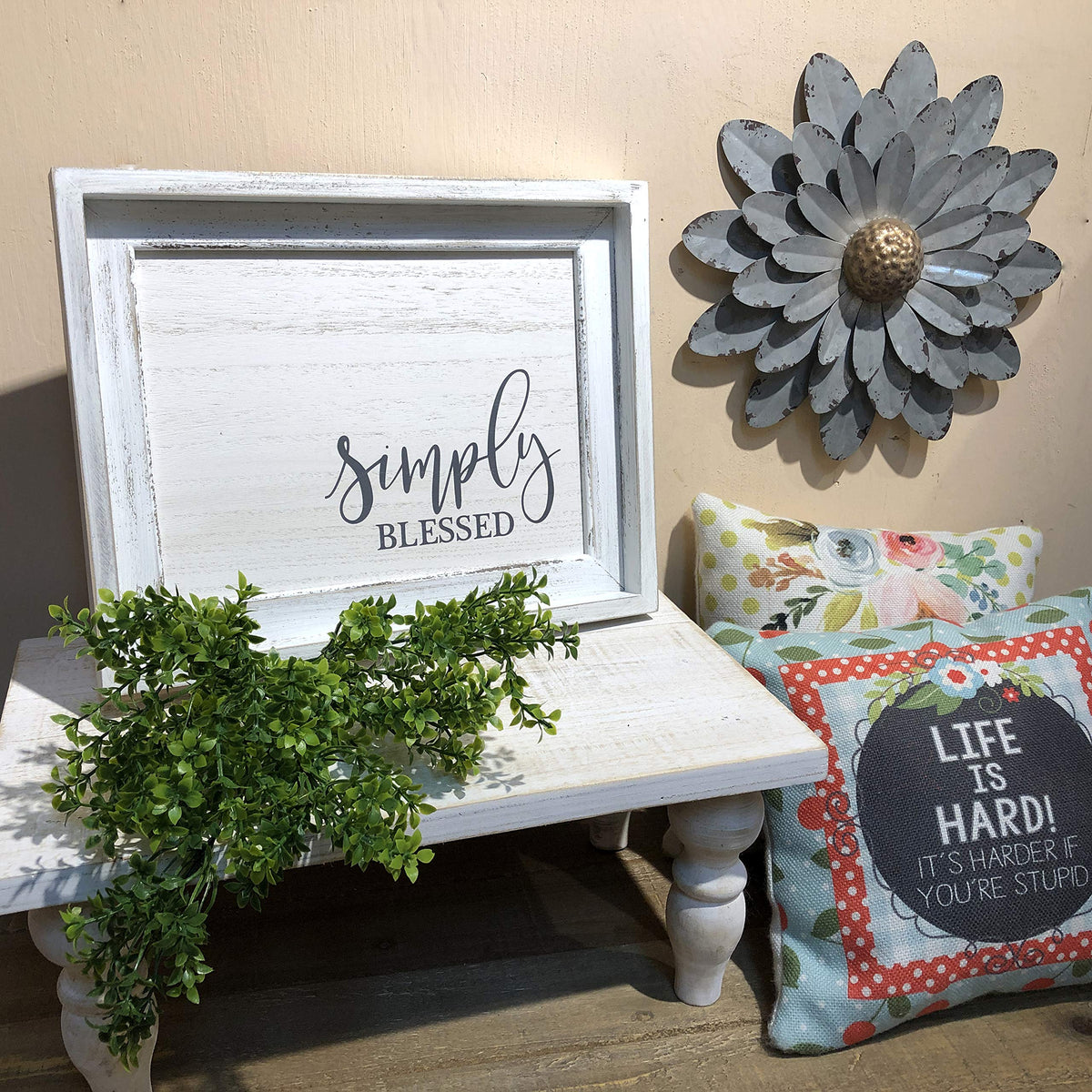 Parisloft Simply Blessed Wood Wall Framed Sign White Wood Wall Decor 12X10 Inch