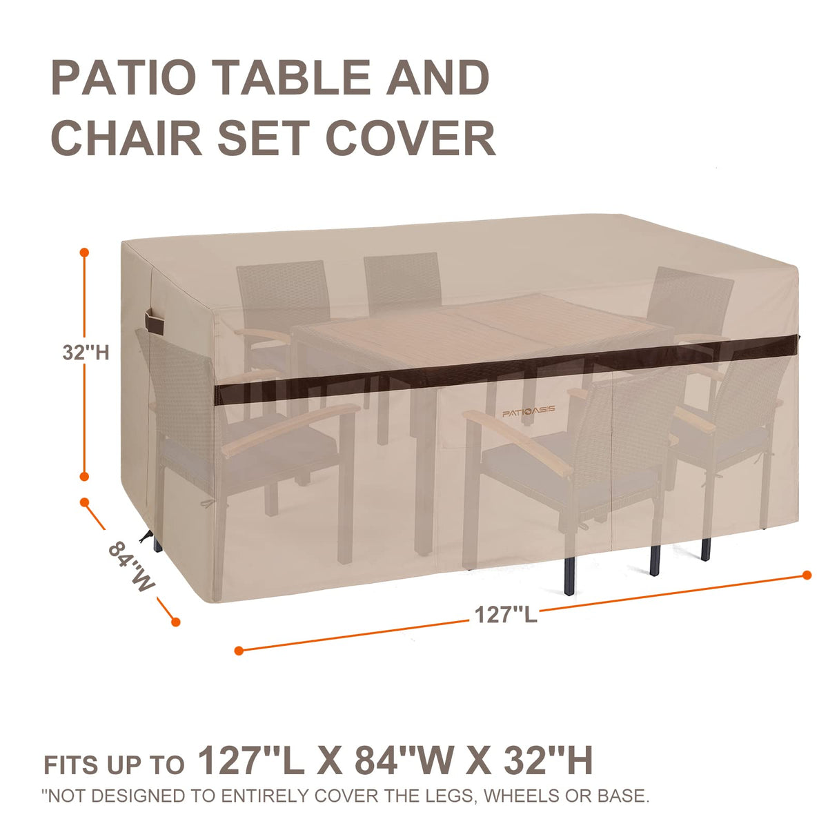 Patio Covers For Outdoor Furniture Waterproof Heavy Duty 600D Large Rectangle Table Cover 127''L X 84''W X 32''H