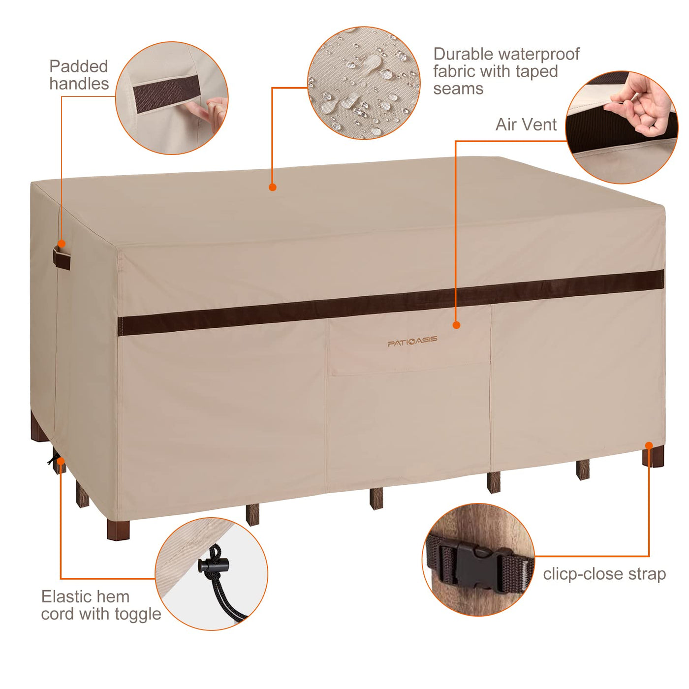 Durable Garden Furniture Covers Rectangle Are Easy To Use And Maintain. Patio Table Set Covers Have Interior Bound Seams For Strength, High-Density Stitching For Durability, Padded Handles For Comfort, Matching Webbing For A Great Look.