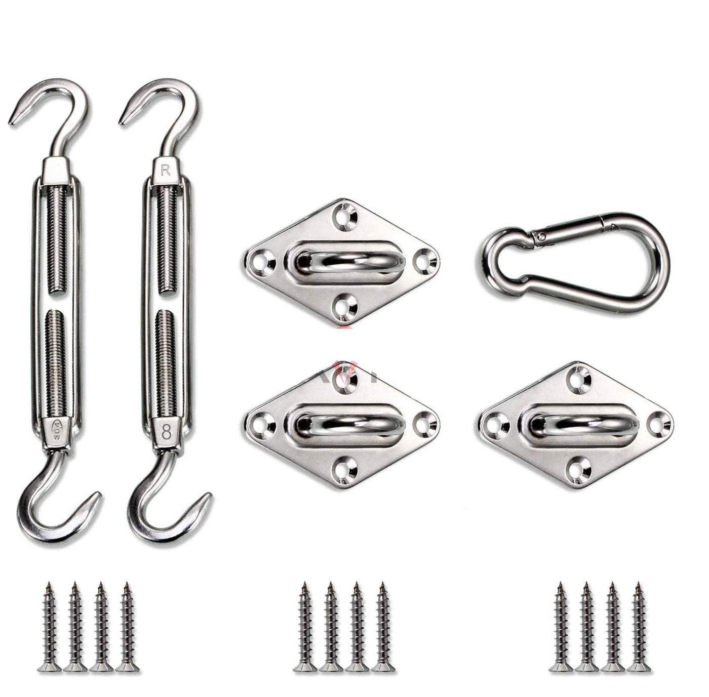 The Sun Shade Hardware Kit It The Best Device To Install Your King Canopy Sun Shade Sail. Made From Stainless Steel This Hardware Kit It Durable And Dependable.This Is A Hardware Kit Required To Install A Square Or Rectangle Shade Sail To Any Structure, Tree Or Pole. Having The Proper Hardware Makes Installation So Much Easier Compared To Piecing It Together Yourself.Set Includes (3) - Pad Eyes (2) - Turn Buckles (1) - Carabineers.