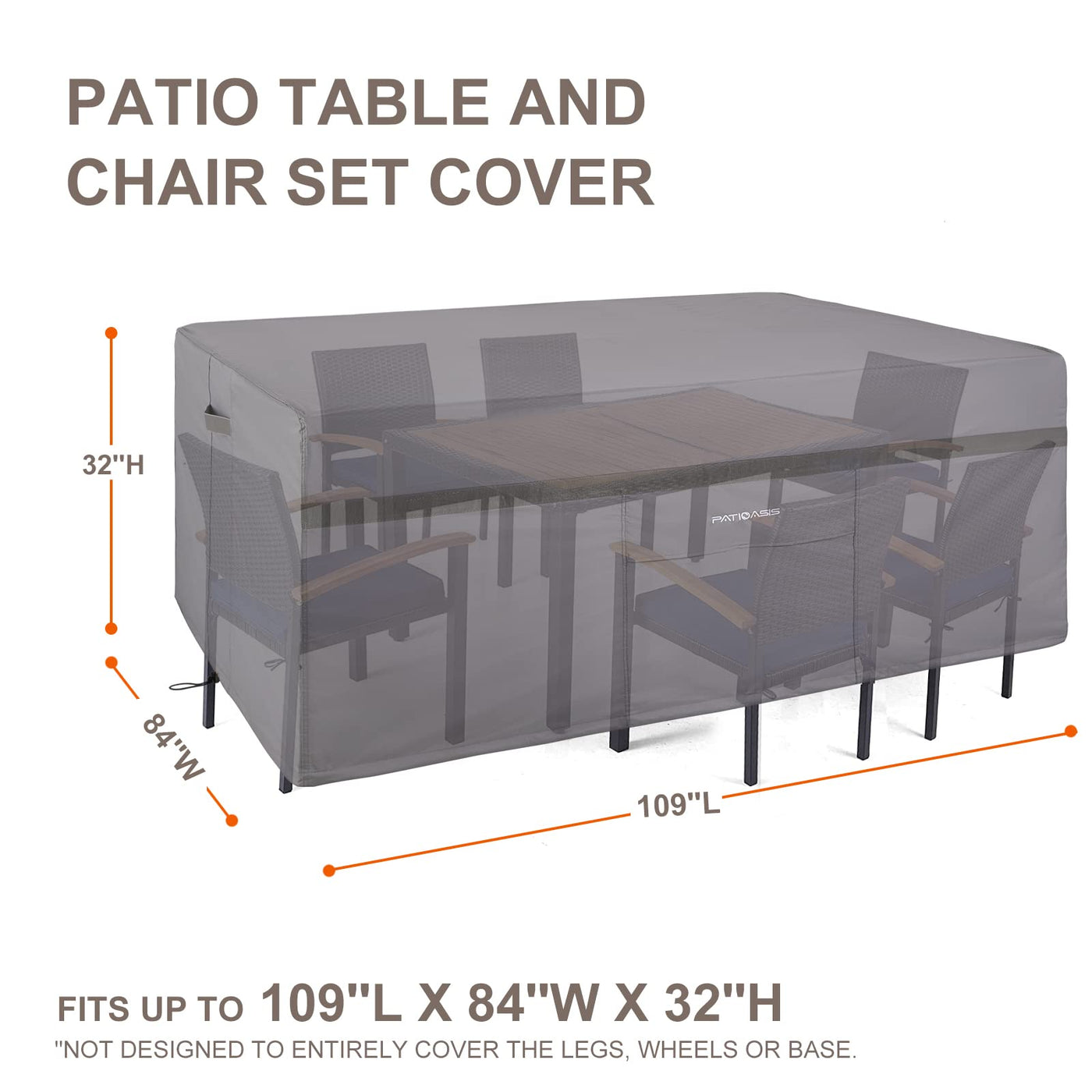 Patio Table Covers Waterproof Rectangular, Hickory Patio Furniture Covers Gray 109''L X 84''W X 32''H Rectangle Outdoor Lawn Table And 7-9 Chairs Covers All Weather Proof