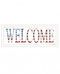 This patriotic welcome 1 white framed print wall art will add a beautiful decorative accent to your decor. This print is a visual artistic expression that allows you to decorate your space in reproduced for you on wood, this hanging decorative accent will be a trendy and fashionable way to dress your walls in a rustic and modern farmhouse vibe. Adding this hanging wall art to your space to make your room feel more attractive. focal point in the room with this wonderful wall decor option. 15' H x 39' W x 1' D