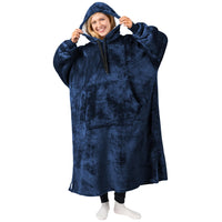 Pavilia Blanket Hoodie For Women Navy, Sherpa Wearable Blanket Men, Cozy Oversized Sweatshirt Blanket, Warm Fleece Hooded Blanke
