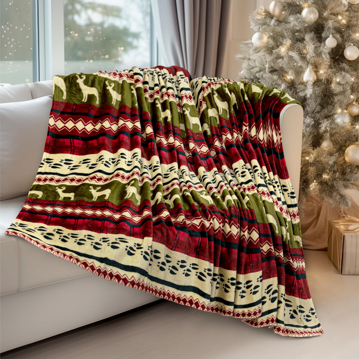 Q: What material is the PAVILIA Christmas Throw Blanket made from?A: This blanket is made from 100% premium microfiber, which is soft, lightweight, and durable. It is also wrinkle and fade resistant, ensuring it stays looking great.
