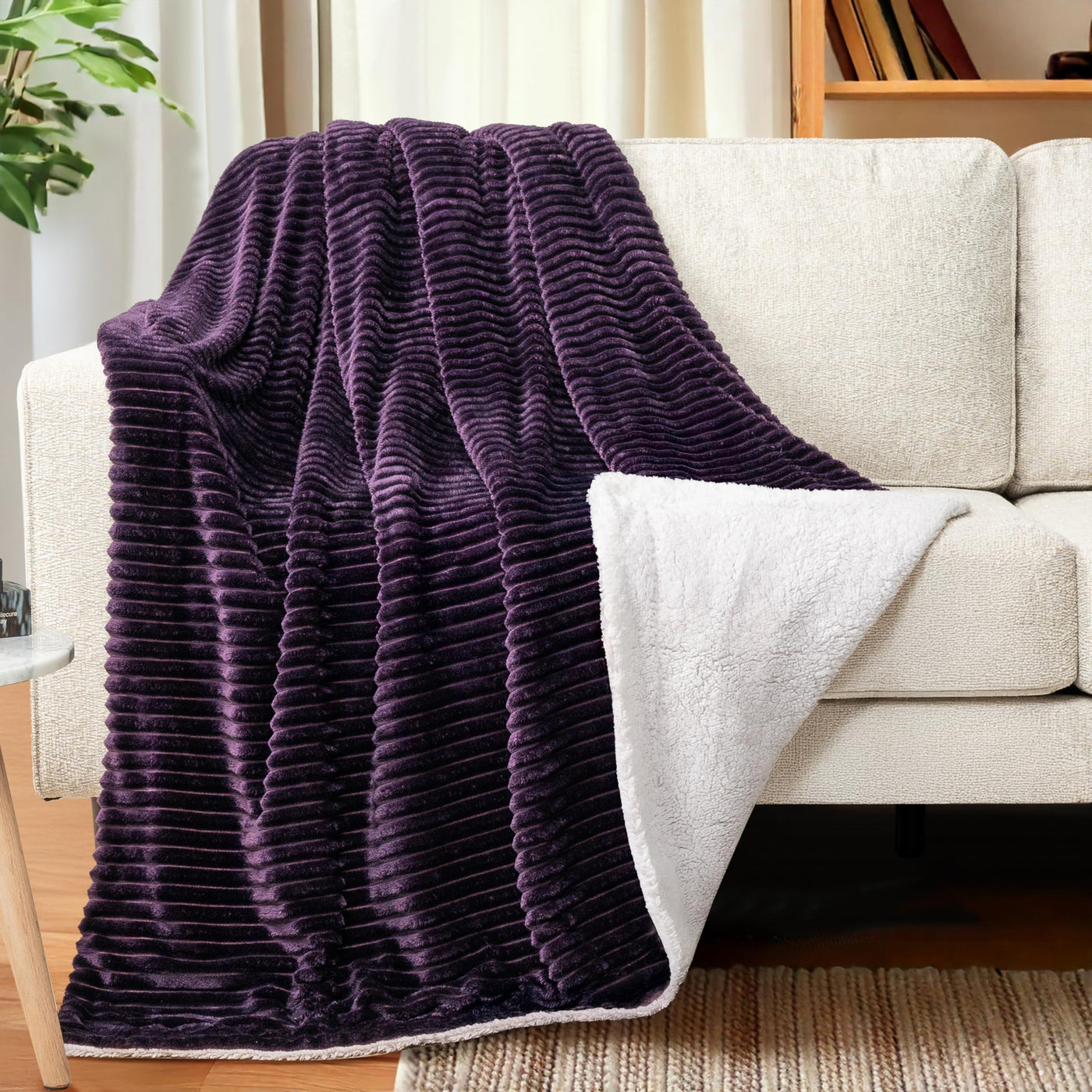 Pavilia Dark Purple Sherpa Fleece Throw Blanket For Couch, Soft Plush Fuzzy Blankets, Fluffy Flannel Sherpa Blanket For Sofa, Wa