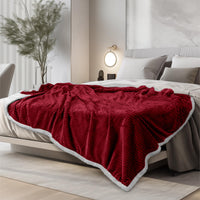 Pavilia Maroon Red Twin Bed Blanket Reversible Sherpa Chevron, Soft Cozy Jacquard Weave Textured Throw Sofa Couch, Thick Warm La