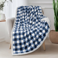 Pavilia Navy Blue And White Buffalo Plaid Sherpa Fleece Throw Blanket For Couch, Soft Flannel Blanket For Sofa Bed, Checkered De