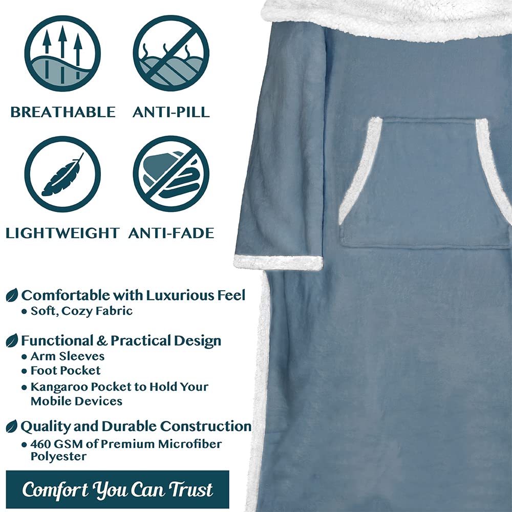 Pavilia Sherpa Blanket With Sleeves And Foot Pocket For Women Men Adults, Fleece Wearable Blanket Sleeved Throw Wrap, Thick Hug