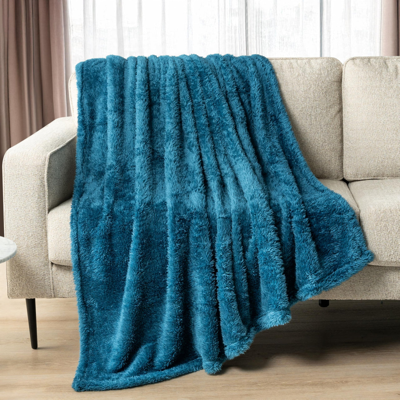 Pavilia Sherpa Throw Blanket For Couch Sofa, Turquoise Teal Blue Fluffy Warm Plush Blanket For Twin Bed, Cozy Super Soft Lightwe
