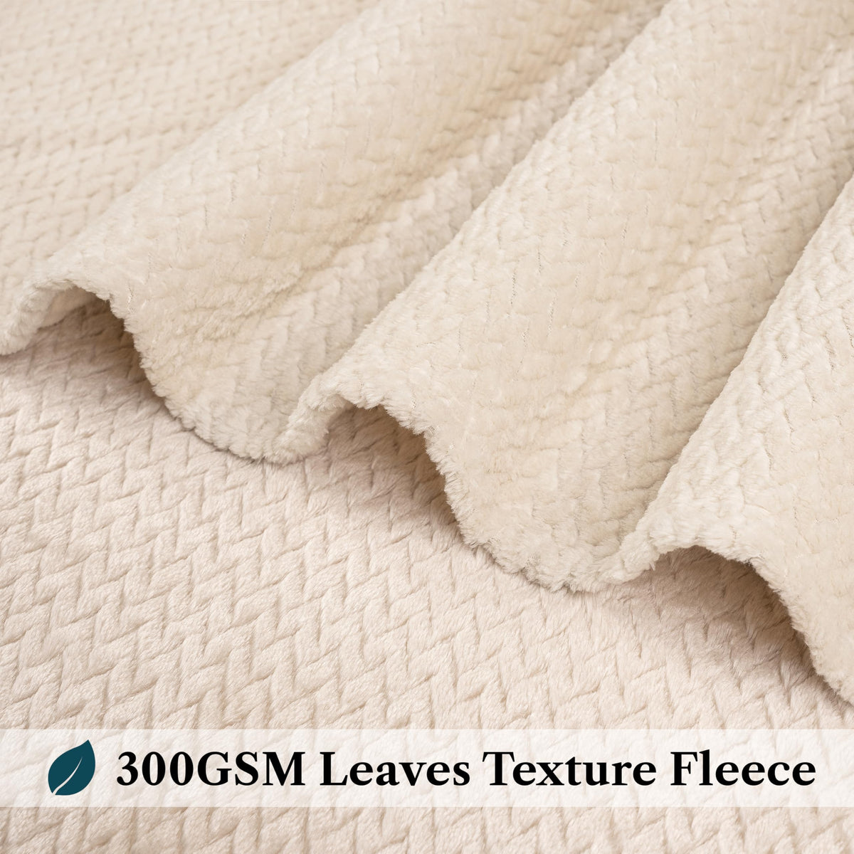 Pavilia Soft Fleece Ivory Cream Throw Blanket For Couch, Lightweight Plush Warm Blankets For Bed, Fuzzy Cozy Flannel Blanket Thr