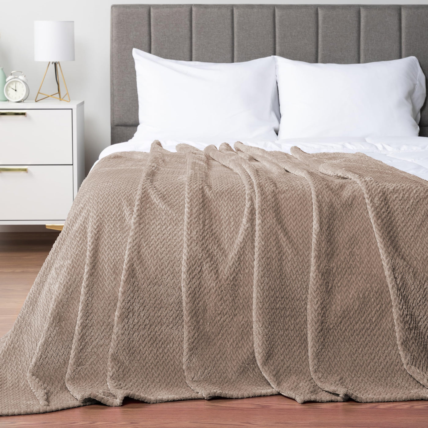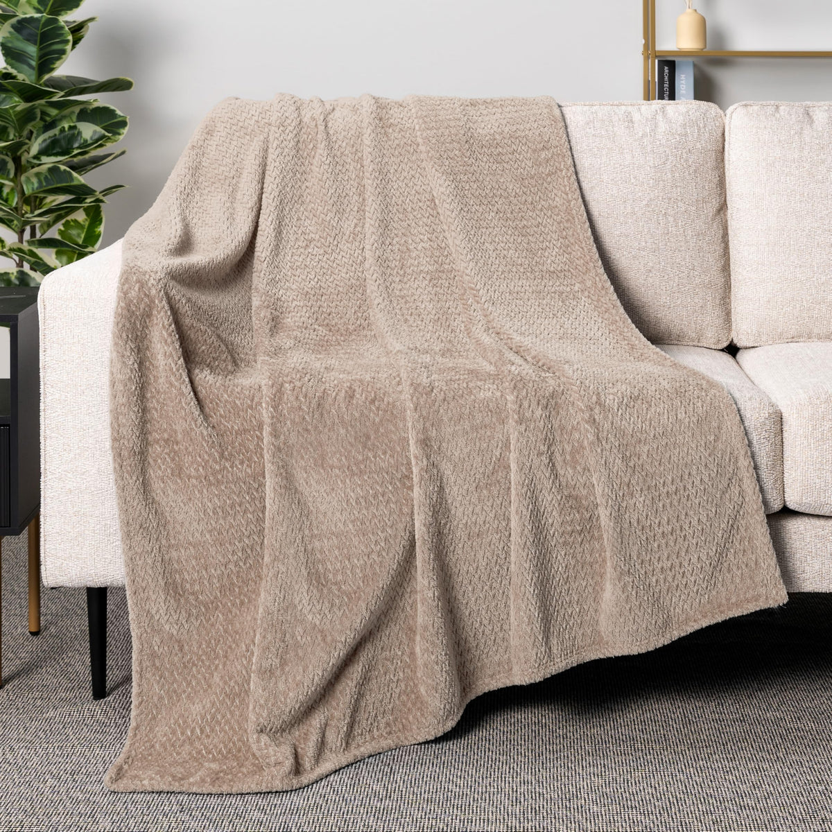Pavilia Soft Fleece Taupe Tan Throw Blanket For Couch, Lightweight Plush Warm Blankets For Bed, Fuzzy Cozy Flannel Blanket Throw