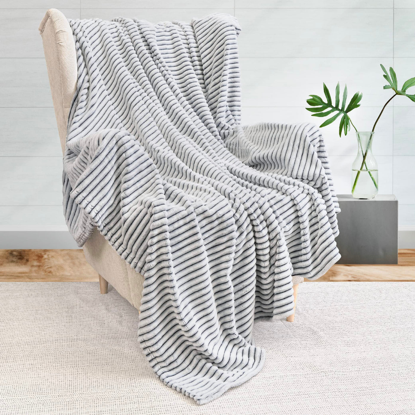 Pavilia Stripe Flannel Fleece Blanket The Perfect Way To Add Color, Pattern, And Decor To Your Home. Whether On Your Sofa, Bed, Or Couch, This Soft And Fuzzy Throw Is The Perfect Addition For Any Living Room. Warm, Stylish, And Most Importantly Comfortable.This Solid Fleece Throw Is Lightweight, Warm, And Cozy, Making It The Ideal Choice For All Season Use. It Is Silky Smooth To Touch With Quality Craftsmanship And You Will Want To Snuggle All Day With The Blanket! Contemporary, Chic, Luxurious, The Blanket Is Constructed With 270Gsm Of High-Quality Microfiber Polyester That Is Soft To Touch, Supple, Easy To Care For, And Lightweight At The Same Time. It Keeps You Warm, But Its Not Thick To The Point Where It Will Overheat You, Giving You The Perfect-Balanced Versatile Throw Blanket For All Seasons Use.Available In Multiple Colors And Sizes, Providing The Perfect Accent For Your Couch, Sofa, And Living Space So You Can Mix And Match!Pavilia Is Comfort You Can Trust. Our Vision To Provide Premium Home Goods That Improve And Enriches The Lives Of Everyone. We Will Continue To Innovate And Bring Exciting Products To Market So You Can Enjoy Life More!Our Products