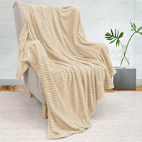Pavilia Super Soft Fleece Throw Blanket Cream Beige, Luxury Fuzzy Plush Flannel Throw, Warm Cozy Ribbed Microfiber Blanket For S