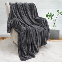 Pavilia Super Soft Fleece Throw Blanket Dark Grey, Luxury Fuzzy Plush Flannel Throw, Warm Cozy Ribbed Microfiber Blanket For Sof