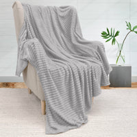 Pavilia Super Soft Fleece Throw Blanket Light Grey, Luxury Fuzzy Plush Flannel Throw, Warm Cozy Ribbed Microfiber Blanket For So