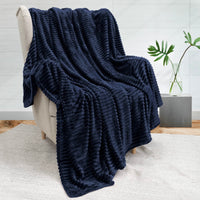 Pavilia Super Soft Fleece Throw Blanket Navy Blue, Luxury Fuzzy Plush Flannel Throw, Warm Cozy Ribbed Microfiber Blanket For Sof