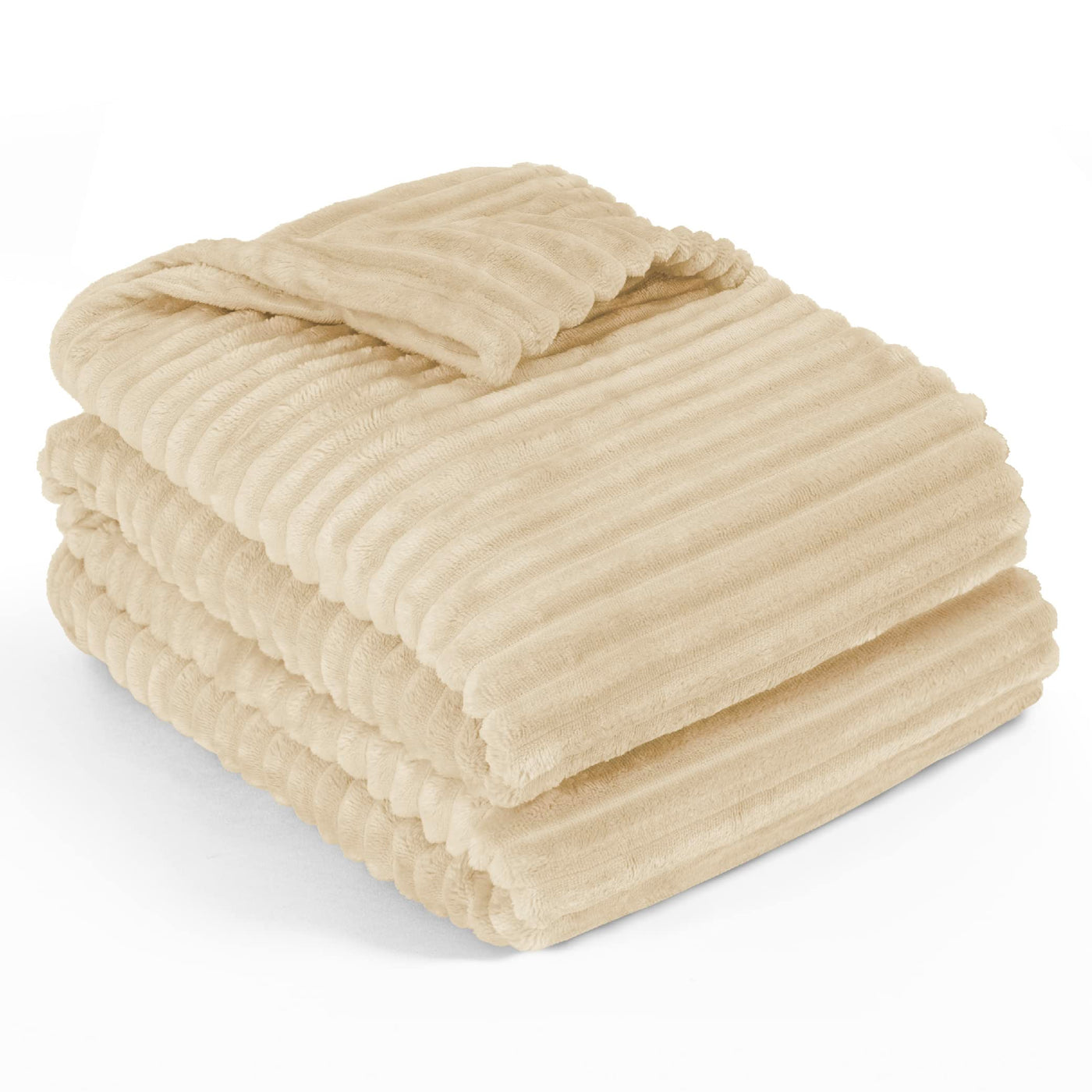 Pavilia Super Soft Fleece Throw Blanket Twin Cream Beige, Fuzzy Plush Flannel Throw, Warm Cozy Ribbed Microfiber Blanket For Sof