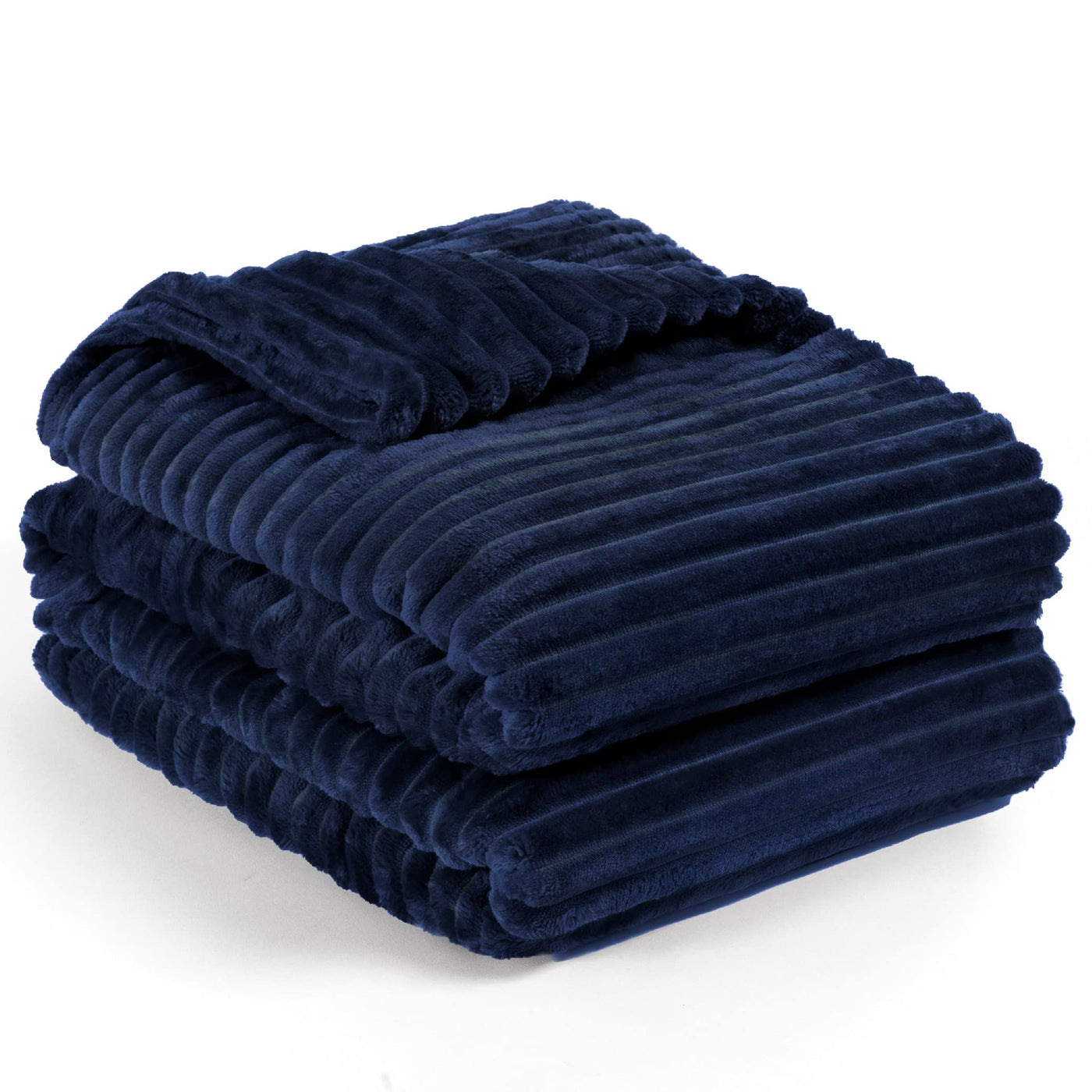 Pavilia Super Soft Fleece Throw Blanket Twin Navy Blue, Fuzzy Plush Flannel Throw, Warm Cozy Ribbed Microfiber Blanket For Sofa