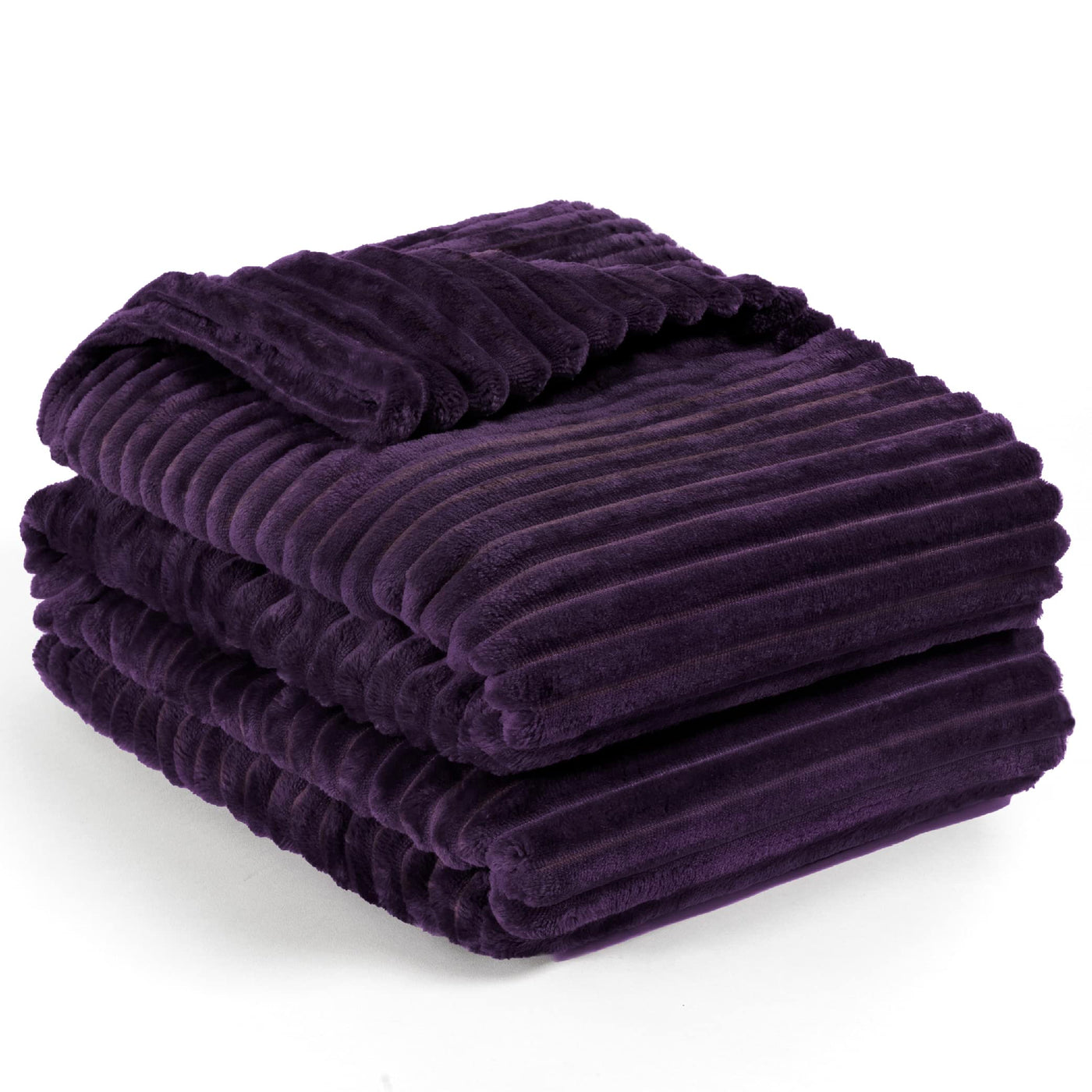 Pavilia Super Soft Fleece Throw Blanket Twin Purple Eggplant, Fuzzy Plush Flannel Throw, Warm Cozy Ribbed Microfiber Blanket For