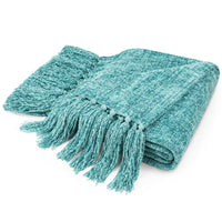 Pavilia Teal Green Throw Blanket For Couch, Twin Size Bed, Chenille Blanket For Sofa Bed, Soft Knit Woven Turquoise Blanket With