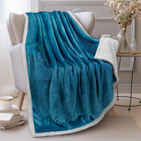 Pavilia Turquoise Sherpa Fleece Throw Blanket For Couch, Soft Thick Bed Blanket For Sofa, Cozy Warm Throw Blanket All Season, Fu