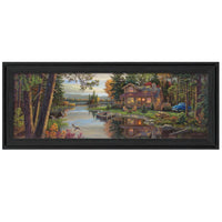 Add an air of fashion to your room and rejuvenate the space with this peace like a river panoramic black framed print wall art. This print is a visual artistic expression that allows you to decorate your space in style. Reproduced for you on paper, this hanging accent will be a trendy and fashionable way to dress your walls. Hang on your wall to add up to some date and fashion decoration. Instantly liven up your space with this art that brings color and brings this art. to your walls. 15. 'H x 39' W x 1' D