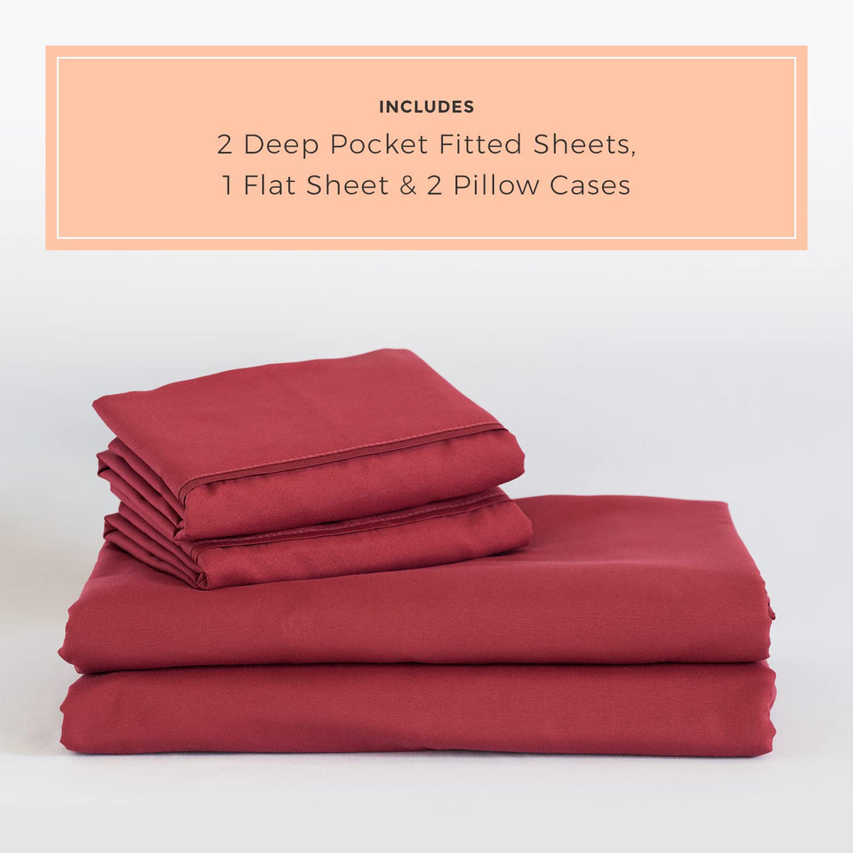 Peachskinsheets Deep Crimson Red Sheet Set - 1500Tc Level Of Softness - Extra Soft Cooling Sheets For Hot Sleepers And Night Swe