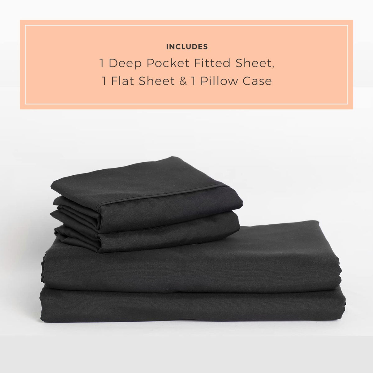 Peachskinsheets Midnight Black Sheet Set - 1500Tc Level Of Softness - Extra Soft Cooling Sheets For Hot Sleepers And Night Sweat
