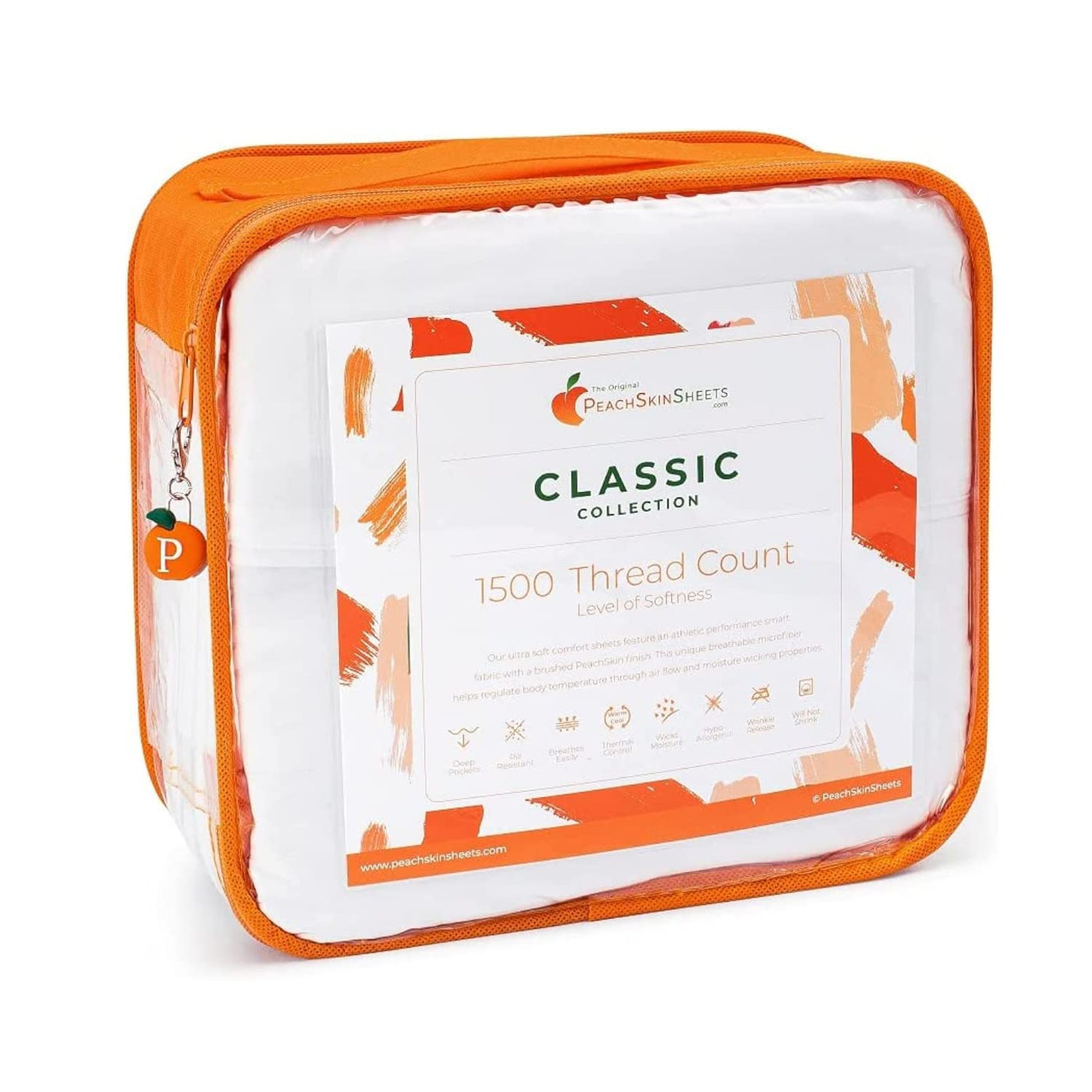 This Original Peachskinsheets 1500Tc Soft Sheet Set Is The Guaranteed Authentic Brand From Atlanta, Georgia And Features Our Signature Peach Zipper Pull. Not Only Do They Provide A Level Of Softness Comparable To 1500 Threads Per Square Inch, But They Are Athletic Grade, Breathable 21St Century Smart Fabric. This Material Allows For Air Flow And Is Designed To Wick Away Moisture While Regulating Cool And Warm Body Temperatures. Our Sheets Won'T Change Your Body Chemistry, But They Will Help Manage Perspiration Better To Keep You Cooler And Drier. Hot Sleepers Stay Cool And Cool Sleepers Stay Cozy, Making Them The Perfect Year-Round Sheets. Smart Fabric Benefits Athletic Grade And Breathable For Hot Sleepers Moisture Wicking To Keep Perspiring Sleepers Drier Thermal Control Works With Your Body And Room Temperature For Year-Round Comfort Finish (Always Wash/Dry Sheets Separately And Never With Towels, Jeans, Etc) Dries In 15-20 Minutes On Med To Med-High Heat And Comes Out Wrinkle Free Anti-Snag And Stands Up To Callouses And Pets Pet Hair Does Not Weave Itself Through Fabric Anti-Slip Surface Means No Sliding Or Stretching Great For Sensitive Skin Colors Will Not Fade And Whites Do Not Gray Ultra Soft Right Out Of The Package 3Pc Twin 1500Tc Soft Sheet Set Includes: One 66'' X 94'' Flat Sheet, One 39'' X 75'' Deep Pocket Fitted Sheet For Mattresses Up To 18'' Thick Including Memory Foam, Custom Number And Double Pillow Top Heights, And One 20'' X 30'' Standard Pillowcase With European Envelope Closure.