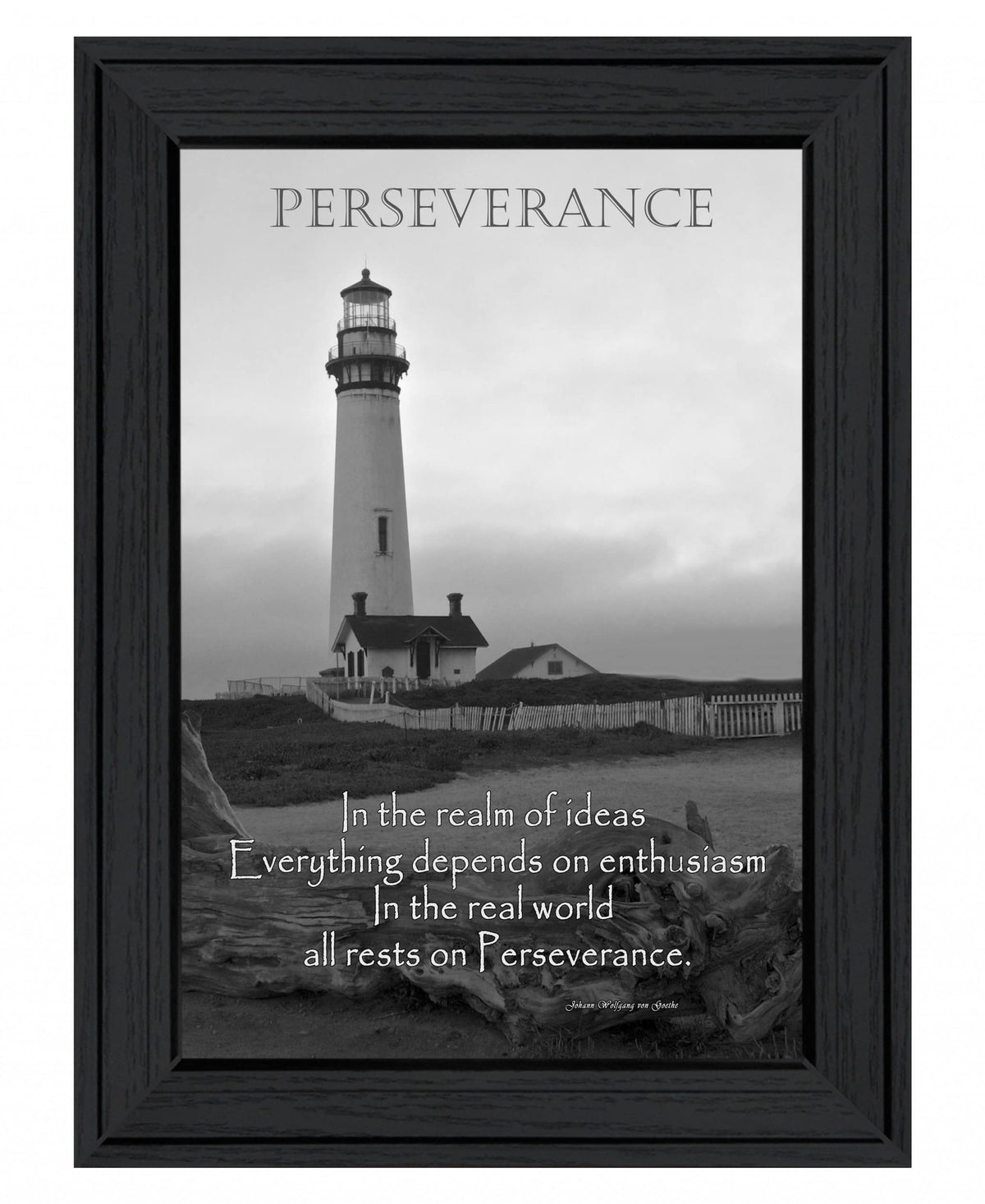 This perseverance grayscale 1 black framed print wall art will add a beautiful decorative accent to your decor. This print is a visual artistic expression that allows you to decorate your space in style. Reproduced for you on wood, this hanging accent will be a trendy and fashionable way to dress your walls in a rustic and modern farmhouse. Adding this hanging art to your space to make your room feel more finished and attractive. create a focal point in the room with this fabulous wall decor option. 19' H x 15' W x 1' D