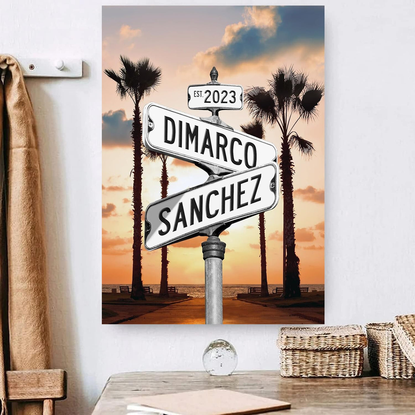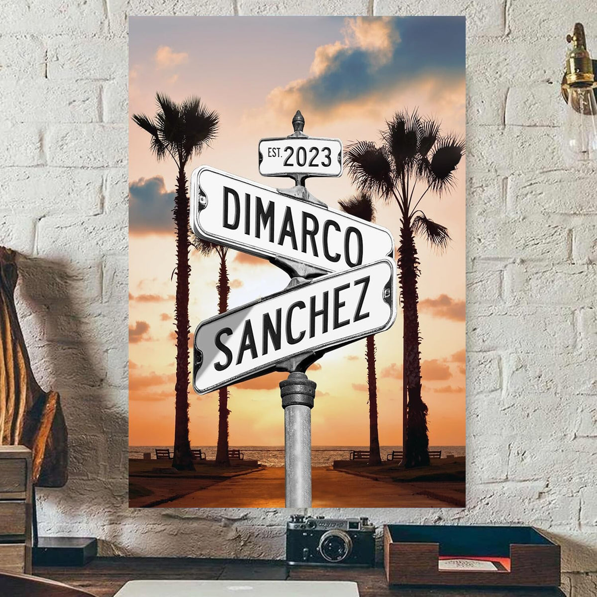 Personalized Crossroads Sign Couple'S Name And Date On Street Sign Poster Or Canvas Prints Love Gift For Anniversary, Wedding, W