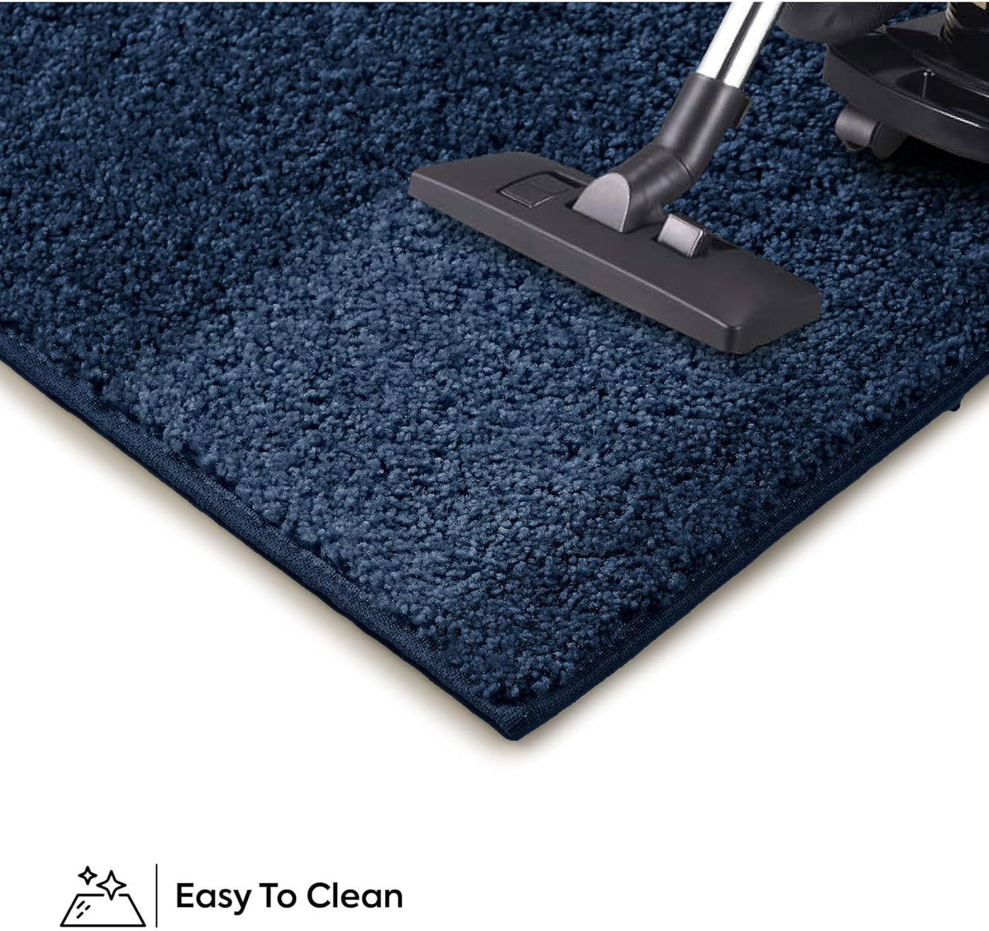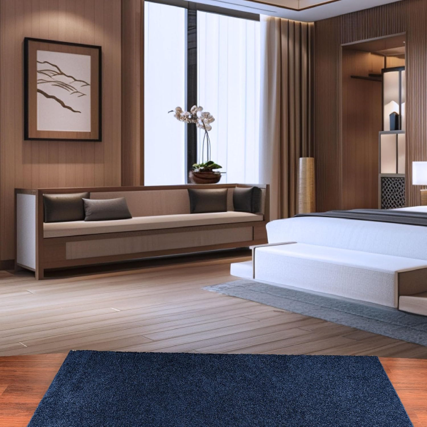 Q: Can this rug be used in different rooms of the house?A: Absolutely! The versatile solid navy color and contemporary design make it suitable for various rooms, including the living room, bedroom, dining room, and entryway.