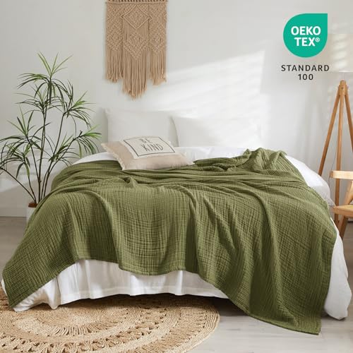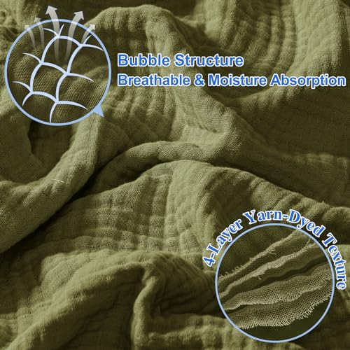 Phf 100% Cotton Muslin Blanket Twin Size 66' X 90', 4-Layer Lightweight And Breathable Blanket, Luxuriously Soft Gauze Bedding For Couch Bed, Ideal Gift Choice, Olive Green