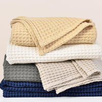 Phf 480Gsm 100% Washed Cotton Waffle Weave Blanket, Cozy Breathable Skin-Friendly Throw Queen Size For All Season, Luxury Fall L