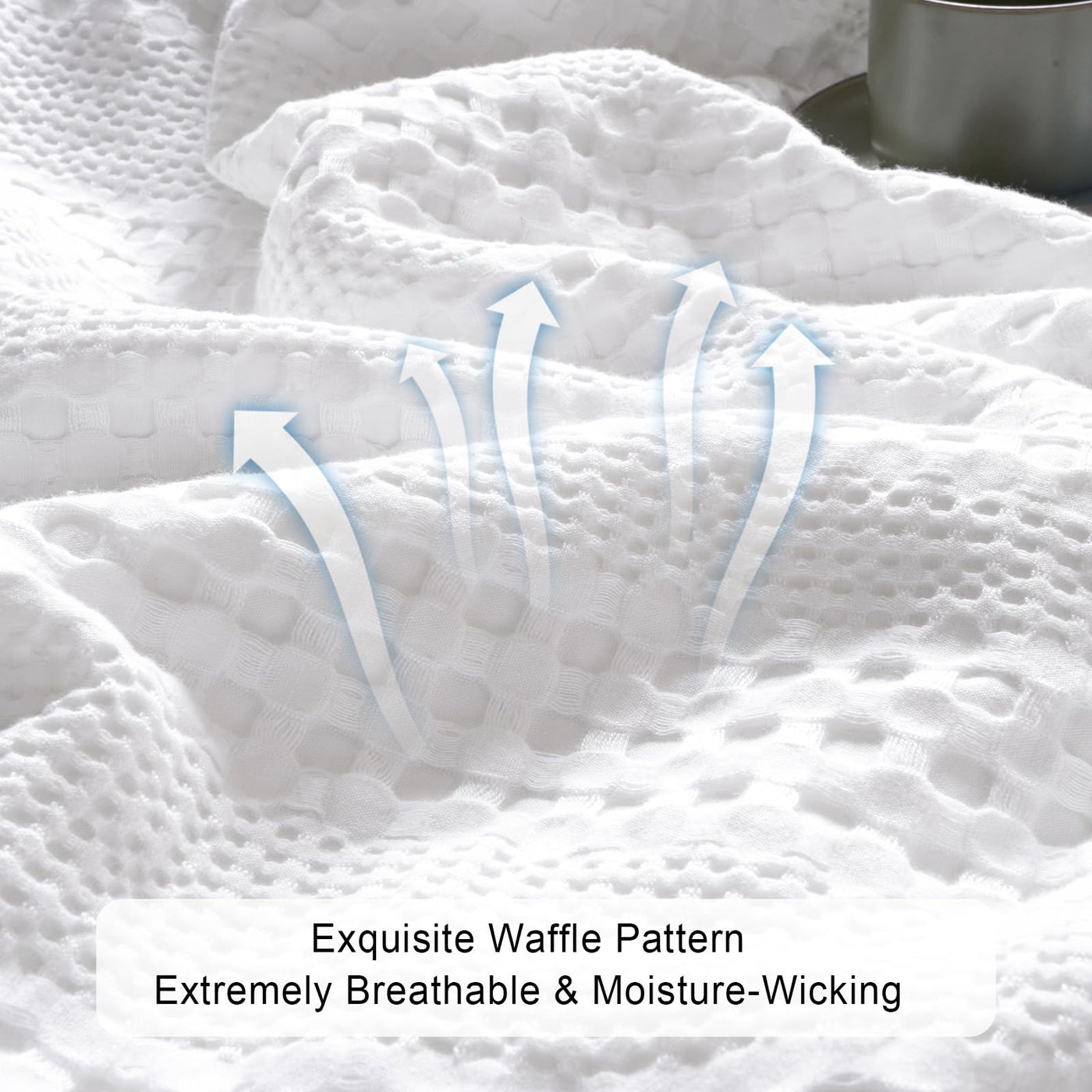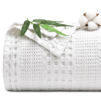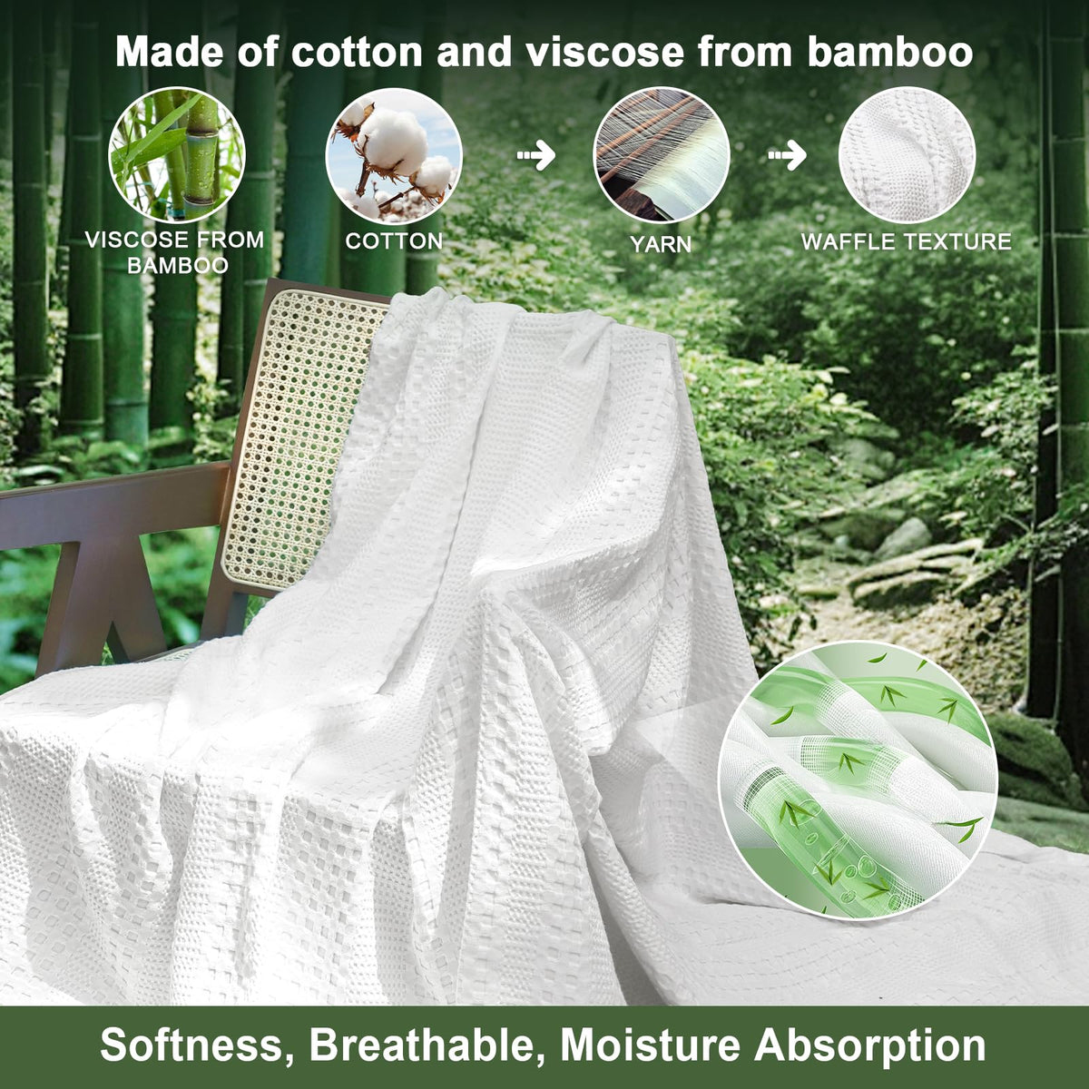 Phf Cooling Waffle Blanket Queen Size, Lightweight 60% Rayon Derived From Bamboo & 40% Cotton Breathable Blanket For Hot Sleepers, Soft And Luxury For Bed Couch And Sofa, 90'X90', White