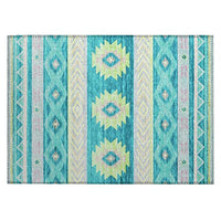 Secondary Colors : Teal Lime Silver Beige| Backing : Non-Skid|Contains Latex : Yes|Rug Pad Recommended : No|Reversible : No|Outdoor Safe : Yes|Fringe : No|Stain Resistant : Yes|Machine Washable? : Yes Machine-Washable for sizes under 5’ x 7’6”. For sizes larger than 5’ x 7’6” it is highly suggested using a commercial sized washing machine. Large sizes are not suggested for smaller home washing machines.|Hi-Low Pile : No|Pile Type : Flat Weave|Clean Care : Easy to clean vacuum without a beater bar recommend suction only or shake out machine washable in cold water and air dry some sizes may be too large for a residential washing machine and is family and pet friendly|Crafted In The USA Using Foreign Domestic Materials And US Labor|Uv Stabilized Indoor / Covered Outdoor|Ultra Thin Polyester Flat Woven Construction With An Incorporated Non-Skid Backing |Ultra Thin Profile Allows For Fast Drying After Rainfall Or Outdoor Cleaning|Machine-Washable For Sizes Under 5’ X 7’6”. For Sizes Larger Than 5’ X 7’6” It Is Highly Suggested Using A Commercial Sized Washing Machine. Large Sizes Are Not Suggested For Smaller Home Washing Machines.