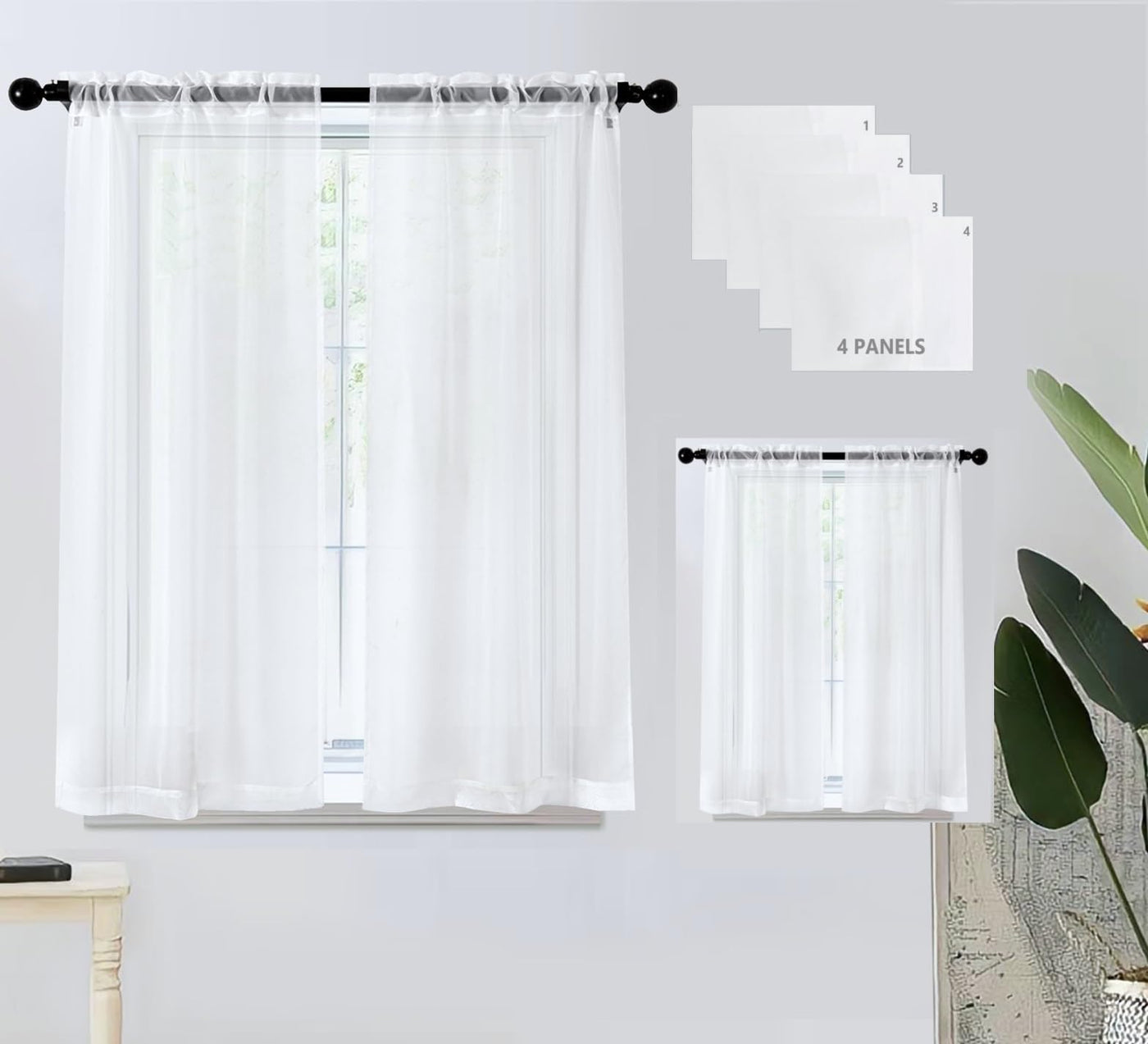 Pi 4 Panels Sheer White Curtains,Small Window Treatment Light Voile With Rod Pocket For Café/Kitchen/Bedroom/Living Room(W42Xl45,Optical White)