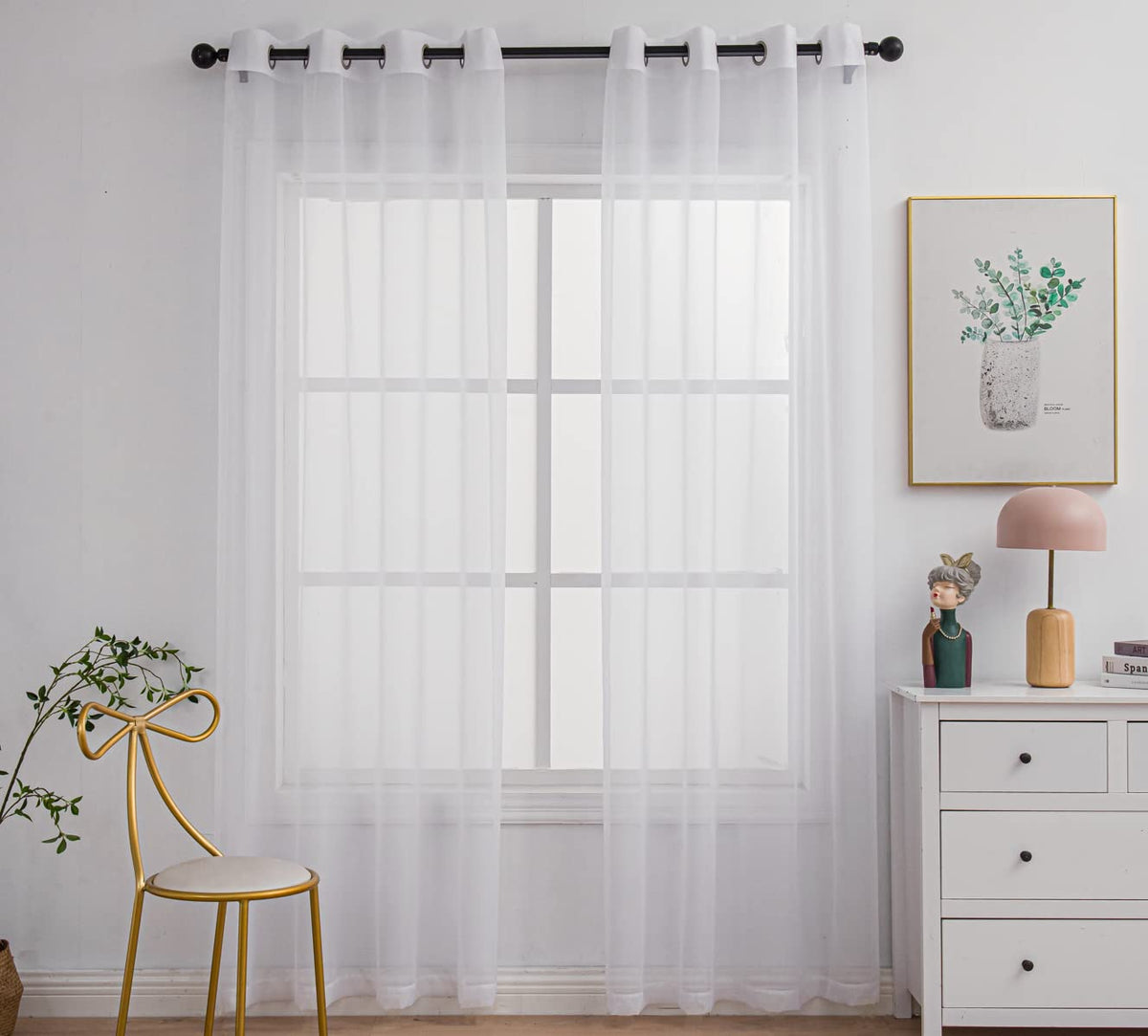 [High Quality Sheer Curtains] The PI sheer curtains are composed of 100% polyester voile fabric that gives it airy and wrinkle free properties along with sheerness that helps the curtain gather neatly and fall straight. | [Versatile Drape Design] The curtains are designed with flat seam that falls perfectly and allows just the right amount of breeze and balance the light entering the room respecting your privacy as well. | [Curtains with Excellent Structure for your Room] The curtain features 2 panels and is equipped with 8 matte silver grommets per panel with the inner diameter measuring 1.58-inches providing a good option for your living room. | [Multi-Functional Curtains] The PI curtains provide a good decoration for indoors as it is suitable for different rooms of the house such as living room, dining room, bedroom, kids room and outdoors such as yard or patio providing light and breeze to come through elegantly for great ambiance | [Easy Care] The PI sheer curtains require minimal care with cold machine wash, gentle cycle and tumble dry low. To extend its durability, do not bleach and light steam iron.