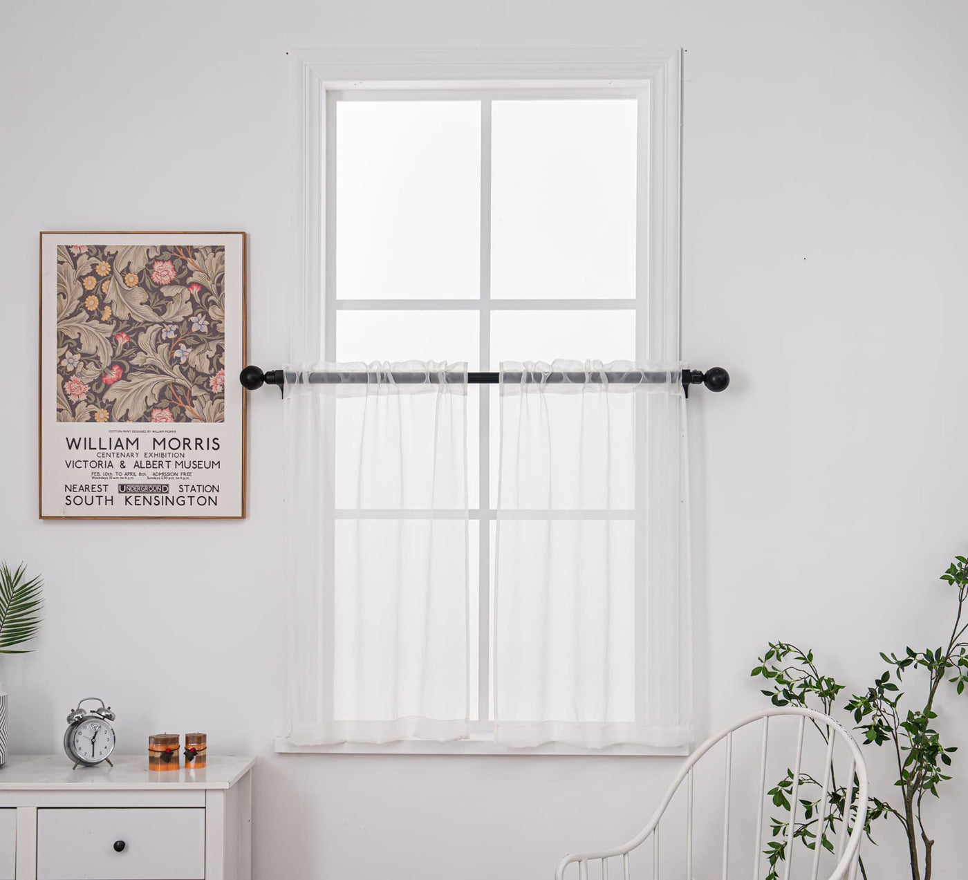Pi Beige Sheer Tier Curtains 36 Inch Length,Voile Café Curtains Kitchen Tiers Basement Rod Pocket 2 Panels (Beige, W25Xl36)