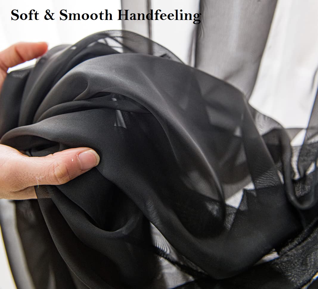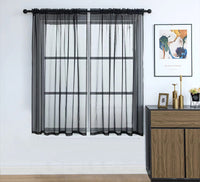 Pi Black Sheer Curtains 45 Inch Length,Voile Short Window Curtains For Kitchen/Bathroom Rod Pocket 2 Panels (Black,W52Xl45)